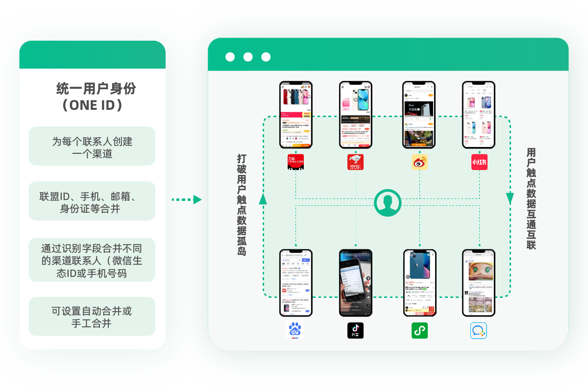 数据整合:自动识别同一个消费者在不同平台的信息,完成数据整合,与京东科技合作,提供以往无法获取的京东域内营销数据。