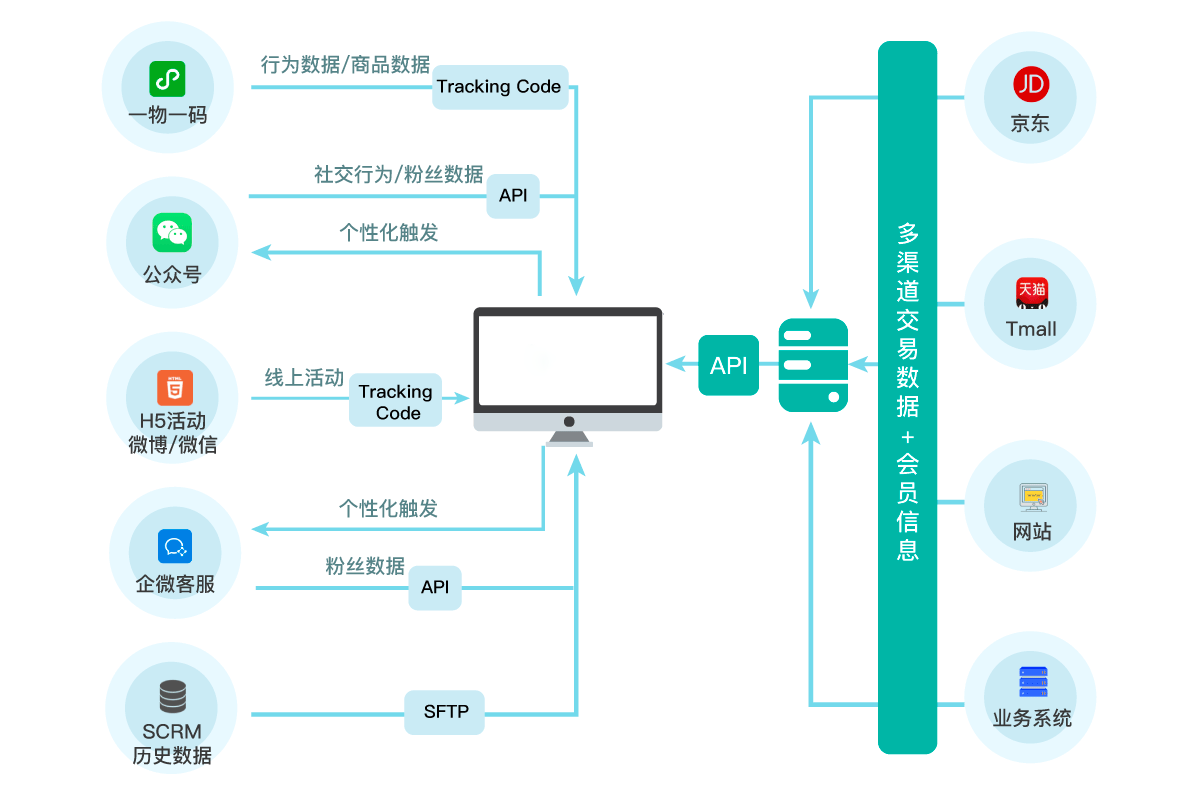 沉淀企业数据资产,对消费数据进行管理与打标签,洞察消费者行为偏好,锁定优质销售渠道,实现消费者复购及提频,根据消费数据研发新产品并用于选址等商业决策。
